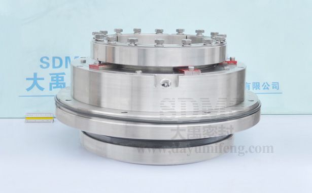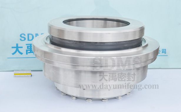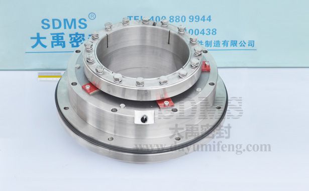 ? ? ? ? 襄陽五二五泵生產(chǎn)的LC系列煙氣脫硫循環(huán)泵用機械密封。LC系列泵包含多個規(guī)格,軸徑有132、145、165、198以及220mm。我公司長期為五二五泵廠和其下游企業(yè)提供以上規(guī)格的配套機械密封。本產(chǎn)品為198mm規(guī)格的,集裝單端面結構。一組密封環(huán)配合骨架油封組合安裝,在機械密封內(nèi)部形成密閉循環(huán)空間,用于外接循環(huán)水,提供沖洗、冷卻和潤華作用,提高機械密封使用壽命。大軸徑密封,為提高傳動穩(wěn)定性,設計了提供抱緊力的鎖緊環(huán),靠16顆螺釘提供抱緊力,使軸套與泵軸相對固定。抱緊式傳動還不對泵軸產(chǎn)生損傷,有利于泵軸的反復利用。